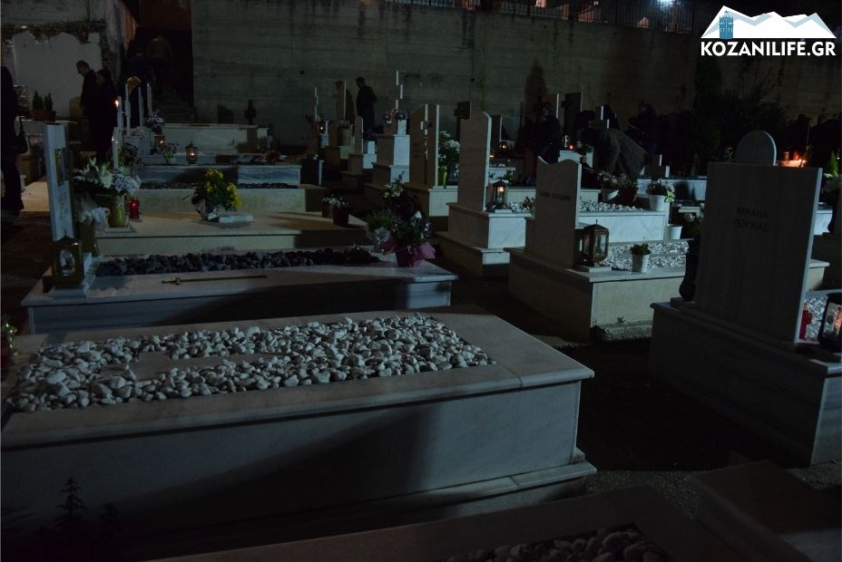 Πλήθος πιστών το βράδυ της Αναστάσεως του Κυρίου, πηγαίνουν στον Ιερό Ναό του Αγίου Γεωργίου Κοζάνης, στα νεκροταφεία της πόλης, με λαμπάδες και αυγά, προκειμένου να βρεθούν στα αγαπημένα τους πρόσωπα που έχουν φύγει από τη ζωή.