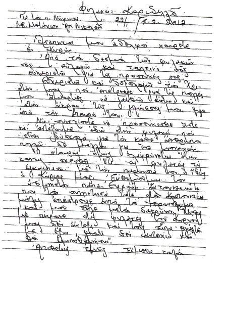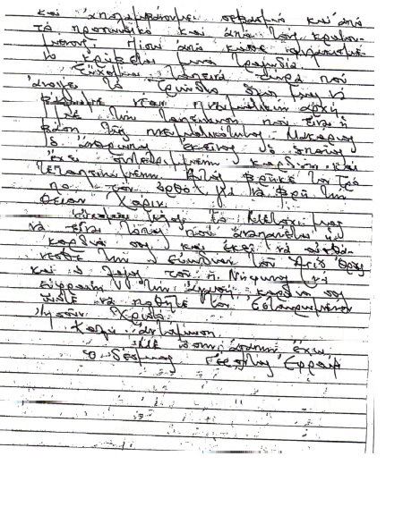 Το χειρόγραφο γράμμα του Ηγουμένου της Ιεράς Μεγίστης Μονής Βατοπαιδίου Αρχιμαδρίτη Εφραίμ από τις φυλακές Κορυδαλλού προς το Μετόχι Αγ.Νικολάου.