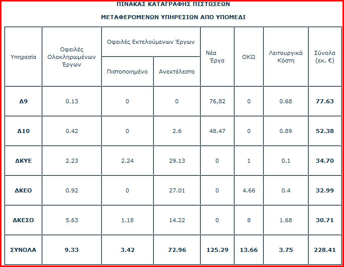 Τα 228,41 εκατ. ευρώ αγγίζουν οι οφειλές του υπουργείου Υποδομών, Μεταφορών και Δικτύων σε εταιρείες που, μεταξύ άλλων, είχαν αναλάβει και τη συντήρηση των φαναριών, με αποτέλεσμα να καθίσταται αδύνατη η υπογραφή νέων συμβάσεων για την επισκευή των φωτεινών σηματοδοτών που παραμένουν ακόμη εκτός λειτουργίας, όπως προκύπτει από τα στοιχεία των υπηρεσιών της Περιφέρειας Αττικής.Τα οφειλόμενα αφορούν εργασίες που πραγματοποιήθηκαν για λογαριασμό των διευθύνσεων Οδικών Έργων Περιφέρειας Αττικής (Δ9), Υδραυλικών Έργων Περιφέρειας Αττικής (Δ10), Κατασκευής Έργων Οδοποιίας (ΔΚΕΟ), Κατασκευής Έργων Συντήρησης Οδοποιίας (ΔΚΕΣΟ) και Κατασκευής Υδραυλικών Έργων (ΔΚΥΕ), καθώς και οφειλές παρελθόντων ετών από τους Οργανισμούς Κοινής Ωφέλειας (ΟΚΩ).