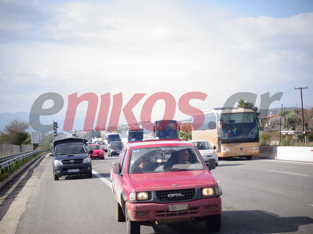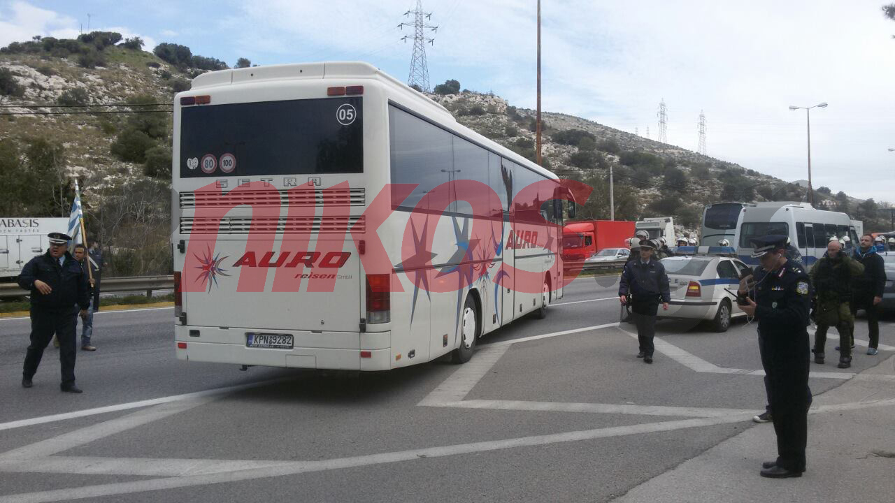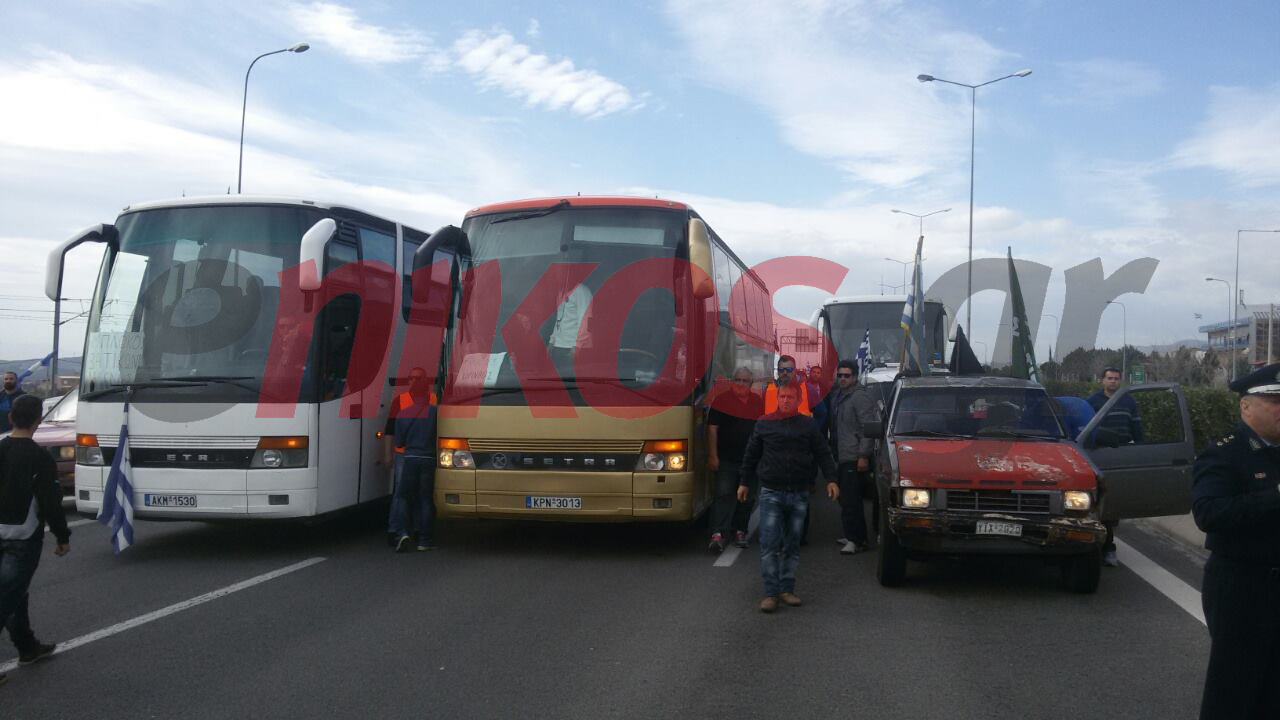 Οι αστυνομικοί απαγόρευσαν την κίνηση των αγροτικών οχημάτων και ΙΧ, ενώ επέτρεπαν τη διέλευση μόνο των λεωφορείων που μεταφέρουν τους αγρότες.