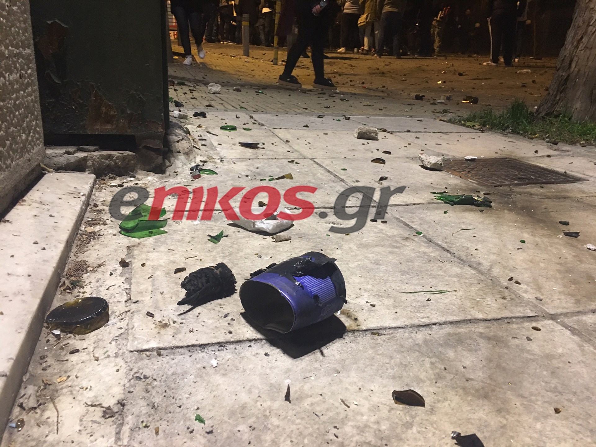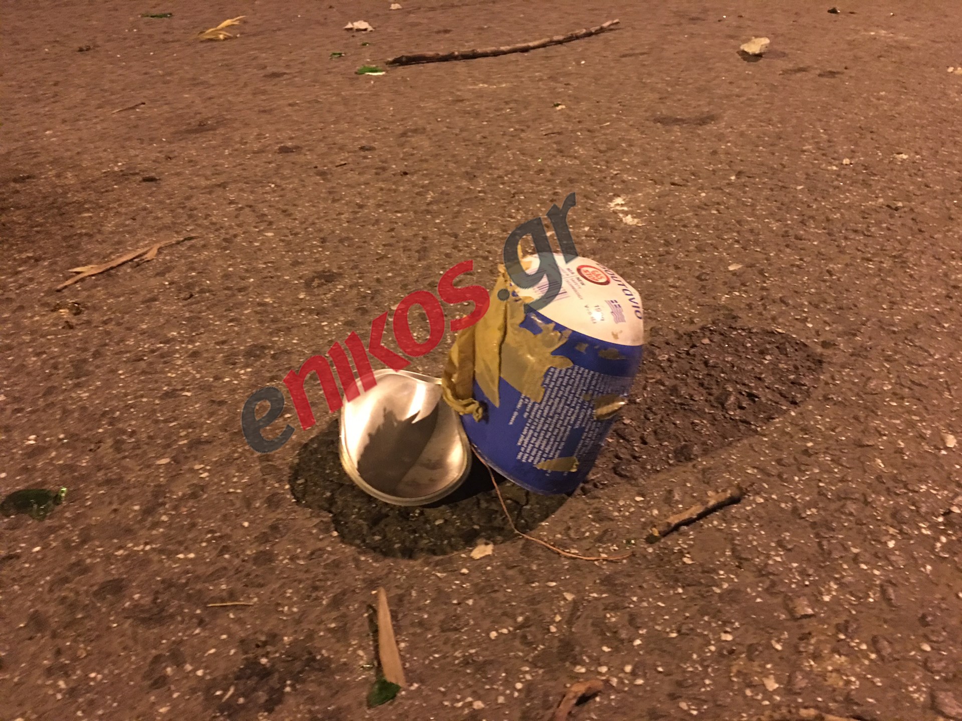 Όπως φαίνονται και στις φωτογραφίες του enikos.gr, οι κουκουλοφόροι πετούν μολότοφ μαζί με γκαζάκια με συνέπεια να είναι μεγάλος ο κίνδυνος για ισχυρή έκρηξη στο σημείο, που πέφτουν.