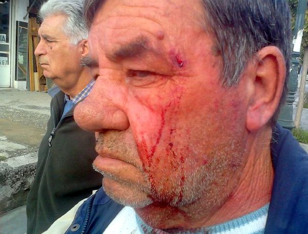 Παρά το ότι του επέδειξαν όλα τα έγγραφα, ο “άγριος εντολοδόχος” επέμεινε να κόψει το ρεύμα και τελικά ήρθε στα χέρια με τον ηλικιωμένο ιδιοκτήτη της επιχείρησης, τον οποίο γρονθοκόπησε, όπως φαίνεται στη φωτογραφία.