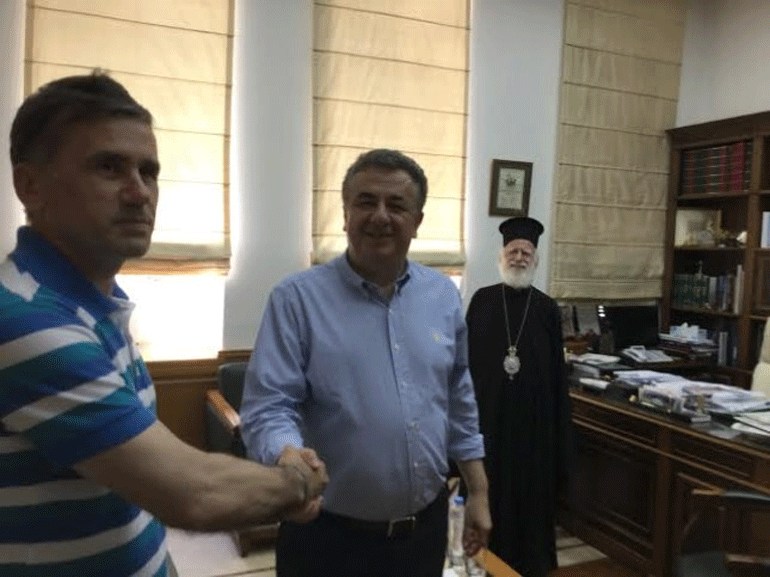 Τον Ρώσο κοσμοναύτη που βρίσκεται στην Κρήτη μετά την επιστροφή του από το διάστημα για αποθεραπεία Γιούρι Μαλέντσενκο, υποδέχθηκαν στα γραφείo της Περιφέρειας ο περιφερειάρχης Σταύρος Αρναουτάκης και ο Αρχιεπίσκοπος Κρήτης Ειρηναίος και του ευχήθηκαν καλή παραμονή τόσο στον ίδιο όσο και στα μέλη της οικογένειας του που τον συνοδεύουν.