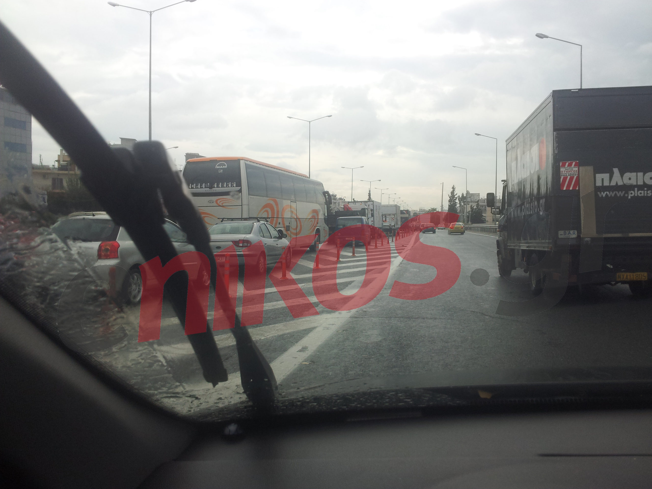 Τις φωτογραφίες μας έστειλε αναγνώστης του enikos.gr που βρίσκεται επί της Αττικής Οδού και συγκεκριμένα στην έξοδο προς εθνική οδό.