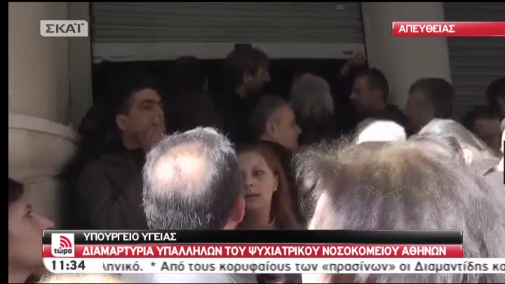 Υπάλληλοι του ψυχιατρικού Νοσοκομείου Αθηνών διαμαρτύρονται αυτή την ώρα έξω από το υπουργείο Υγείας.