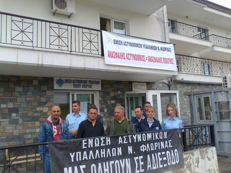 Η Ένωση Αστυνομικών Υπαλλήλων Φλώρινας πραγματοποιεί αυτή την ώρα διαμαρτυρία έξω από την έδρα της Αστυνομικής Διεύθυνσης της Φλώρινας.