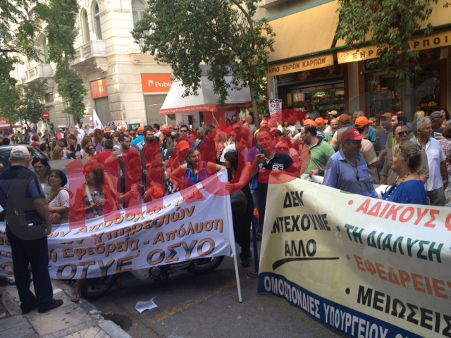 Εφοριακοί και τελωνιακοί, εργαζόμενοι στο υπουργείο Οικονομικών, πραγματοποιούν συγκέντρωση διαμαρτυρίας αυτή την ώρα, έξω από το παράρτημα του υπουργείου στην οδό Καραγιώργη Σερβίας.