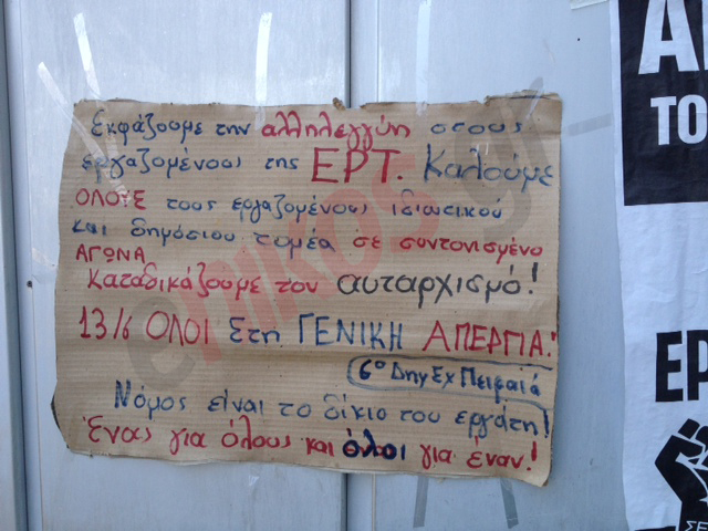 Πανό, ζωγραφίες και συνθήματα με φαντασία έχουν κατακλύσει το ραδιομέγαρο της ΕΡΤ στην Αγία Παρασκευή.