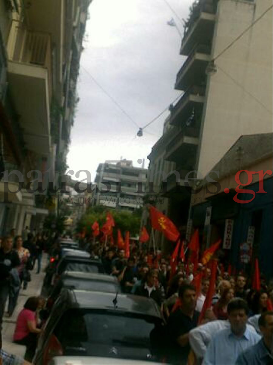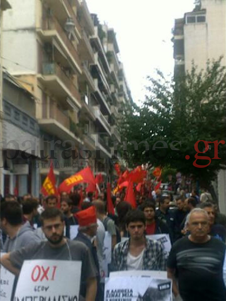 Πριν λίγα λεπτά ξεκίνησε η παρέλαση των διαδηλωτών, από την μιά πλευρά με το ΚΚΕ στην διασταύρωση των οδών Αράτου και Αγ. Ανδρέου και από την άλλη στην οδό Κολοκοτρώνη και Αγίου Ανδρέου τις ομάδες ΚΚΕ, ΣΥΡΙΖΑ και Αγανακτισμένων να προσπαθούν με συνθήματα να σπάσουν τον αστυνομικό κλοιό και να παρελάσουν.