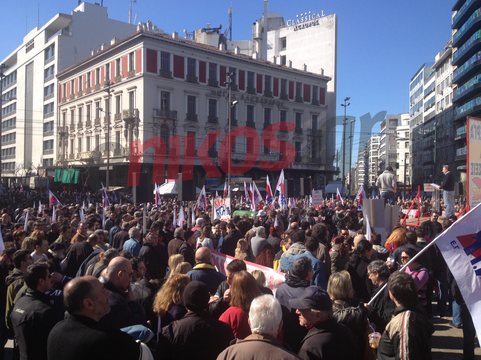 Σε εξέλιξη είναι αυτή την ώρα η συγκέντρωση του ΠΑΜΕ. Εκατοντάδες εργαζόμενοι και μέλη του ΠΑΜΕ εξακολουθούν να συρρέουν στην πλατεία της Ομονοίας.