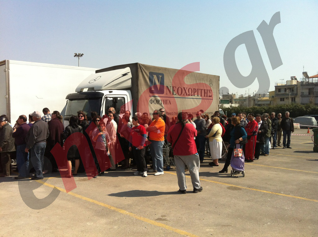 2.800 καταναλωτές βρίσκονται αυτή την ώρα γύρω από το φορτηγό των παραγωγών που πωλούν ρύζι με 90 λεπτά το κιλό, δίπλα στο δημοτικό πάρκο.Γίνεται χαμός…