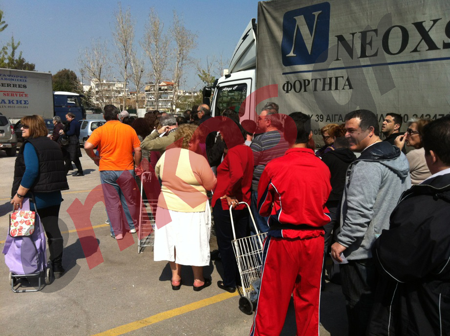 2.800 καταναλωτές βρίσκονται αυτή την ώρα γύρω από το φορτηγό των παραγωγών που πωλούν ρύζι με 90 λεπτά το κιλό, δίπλα στο δημοτικό πάρκο.Γίνεται χαμός…