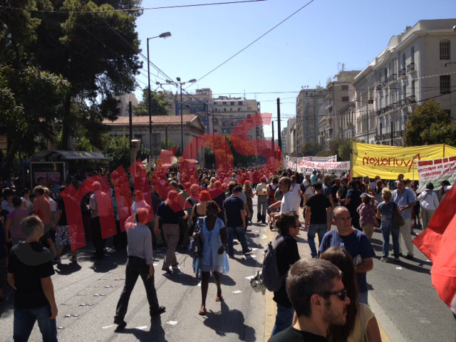 Πλήθος κόσμου κατά μήκος της Πατησίων για την πορεία της ΓΣΕΕ.