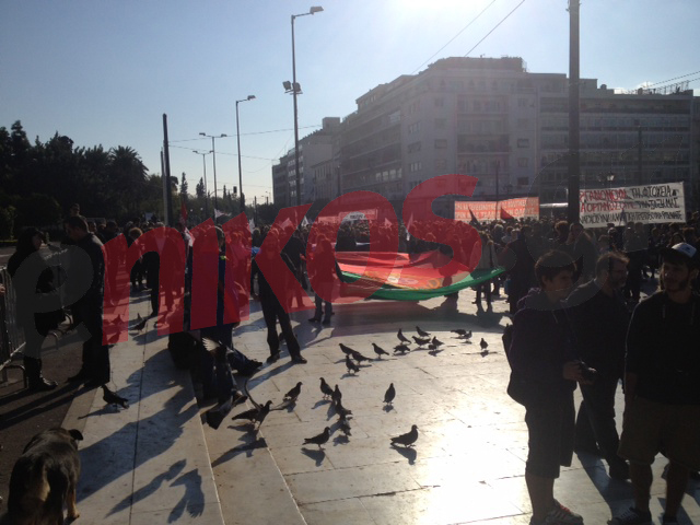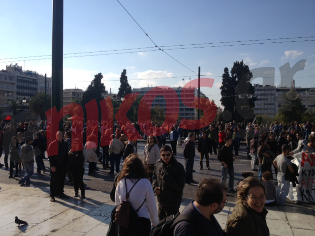 Η πορεία της ΓΣΕΕ – ΑΔΕΔΥ που ξεκίνησε από την πλατεία Κλαυθμώνος, στο πλαίσιο του Πανευρωπαϊκού συλλαλητηρίου κατά της λιτότητας, έφτασε έξω απο τη Βουλή…