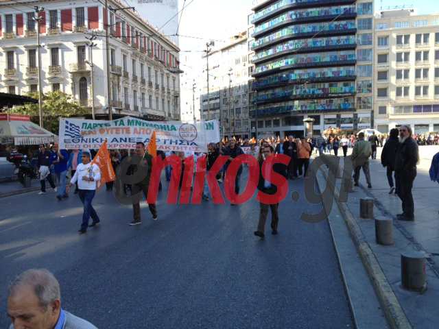 Κλειστή είναι αυτή την ώρα η οδός Σταδίου στο κέντρο της Αθήνας από πορεία των εργαζομένων στην τοπική αυτοδιοίκηση.