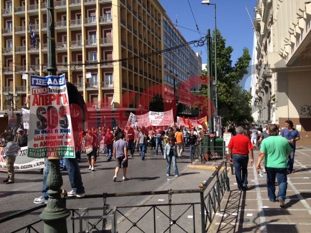 Δείτε τις φωτογραφίες από την πορεία των εργατικών σωματείων επί της οδού Σταδίου…