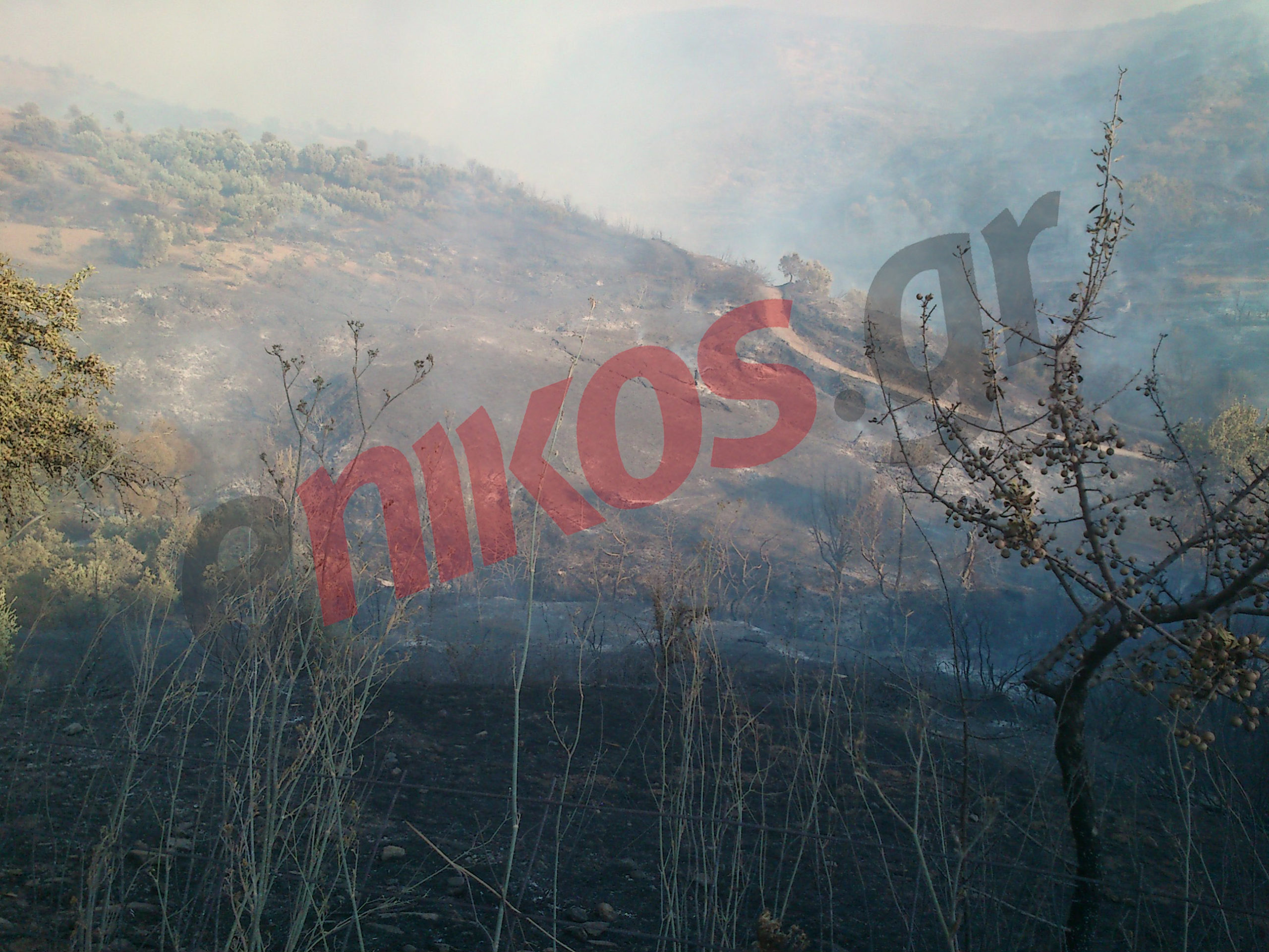 Πυροσβέστες μαζί με ιδιωτικές υδροφόρες προσπαθούν να περιορίσουν τη φωτιά πριν φτάσει μέσα στο χωριό Αχλαδερή. Εν τω μεταξύ έχουν καεί ξωκλήσια.Η φωτιά διέσχισε τον δρόμο και έχει κατακάψει τα πάντα στο πέρασμά της.. Τα αεροπλάνα κάνουν ακόμα ρίψεις ενώ υπάρχουν και μικρές αναζωπυρώσεις στην περιοχή από όπου ξεκίνησε η φωτιά (Ελαία-Πυργί) γεγονός που αναγκάζει τις δυνάμεις της Πυροσβεστικής να μοιράζονται στα μέτωπα. Στην περιοχή έχουν σπεύσει προκειμένου να συνδράμουν στην κατάσβεση και μέλη της 7ης ΕΜΑΚ Τις φωτογραφίες μας έχει στείλει ο δημοσιογράφος Γιώργος Μπαλαμπάνης.