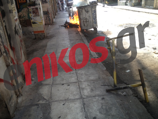 Τώρα-Καμένοι κάδοι και στα Εξάρχεια