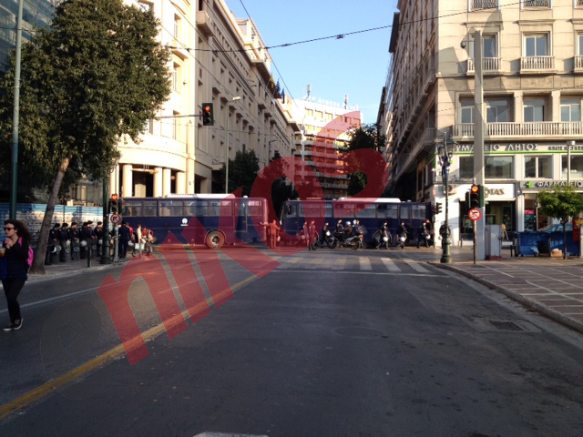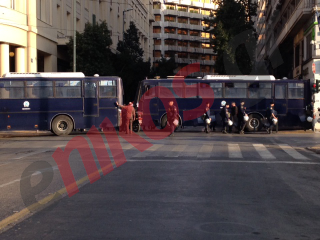 Την ίδια ώρα οι αστυνομικές δυνάμεις έχουν στήσει φραγμό στην Αμερικής, με αποτέλεσμα να εμποδίζουν την συνέχιση της πορείας έως το Σύνταγμα.