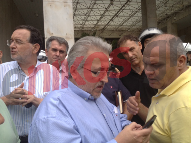 «Δεν θα φύγει κανείς αν δεν αφεθούν ελεύθεροι» είπε ο κ. Λαφαζάνης στους συγκεντρωμένους ναυτεργάτες.