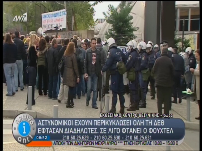 Εκατοντάδες αστυνομικοί έχουν περικυκλώσει αυτή την ώρα την είσοδο της ΔΕΘ, για να “προστατέψουν” τον Γερμανό υφυπουργό Εργασίας Χανς Φούχτελ, από το πλήθος των διαδηλωτών, που διαμαρτύρονται, ειδικά μετά τις χθεσινές δηλώσεις Φούχτελ.