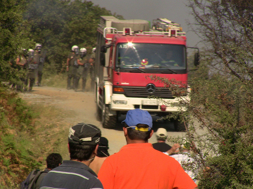 Στη φωτιά που έχει ξεσπάσει στο δάσος των Σκουριών πηγαίνουν πέντε οχήματα με δέκα πυροσβέστες και ένα πεζοπόρο τμήμα 12 ατόμων.
