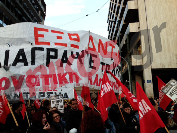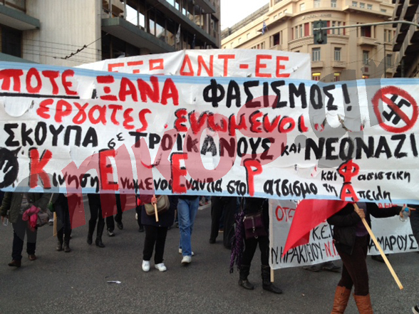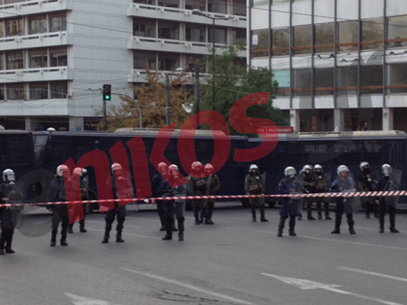 Κρατώντας πανό κατά του φασισμού, του ΔΝΤ και της ΕΕ, πλήθος κόσμου έχει συγκεντρωθεί στην πλατεία Συντάγματος, για την 39η επέτειο του Πολυτεχνείου.