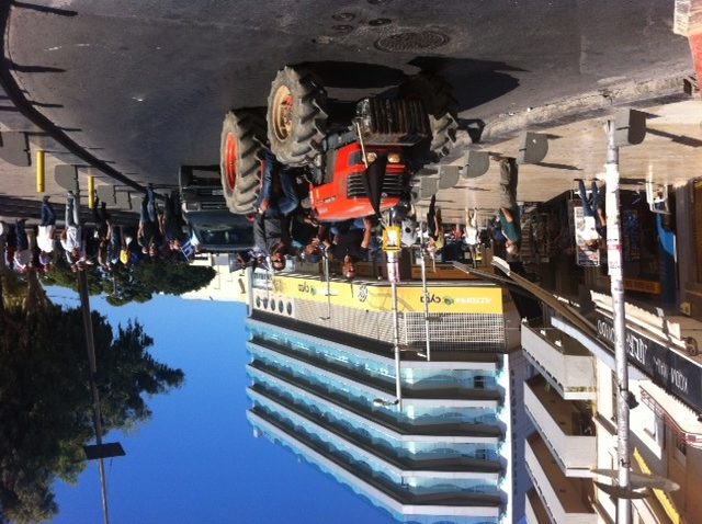 Ορισμένοι μάλιστα επέλεξαν να διαμαρτυρηθούν και με τρακτέρ! Στην πορεία συμμετέχουν και οδηγοί ταξί.