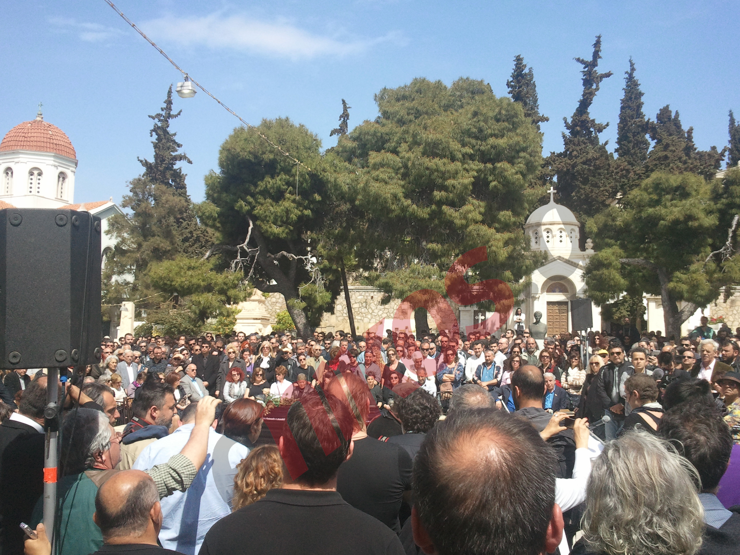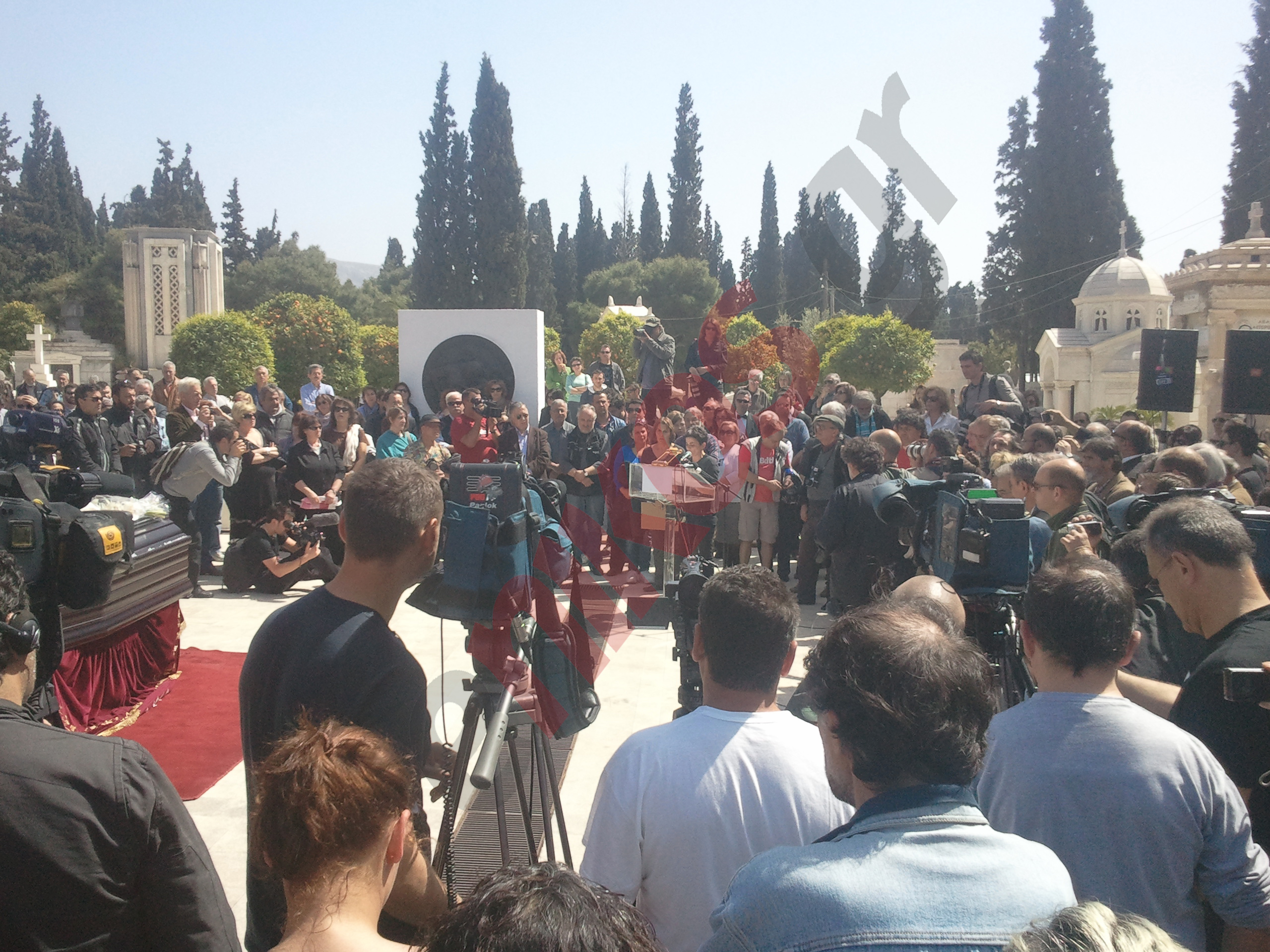 Το ύστατο χαίρε απηύθυνε πριν λίγο η βουρκωμένη κόρη του Δημήτρη Χριστούλα, από μικροφώνου. Η φράση που έμεινε ήταν «σύντροφε πατέρα, με τη θυσία σου μας έστειλες το μήνυμα».Χαιρετισμό απηύθυνε και ο πρόεδρος του Φαρμακευτικού Συλλόγου Αττικής, Κώστας Λουράντος.