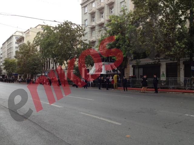 Αστυνομικοί έχουν πλημμυρίσει τους γύρω δρόμους, λίγο πριν ξεκινήσει η παρέλαση στην Αθήνα.
