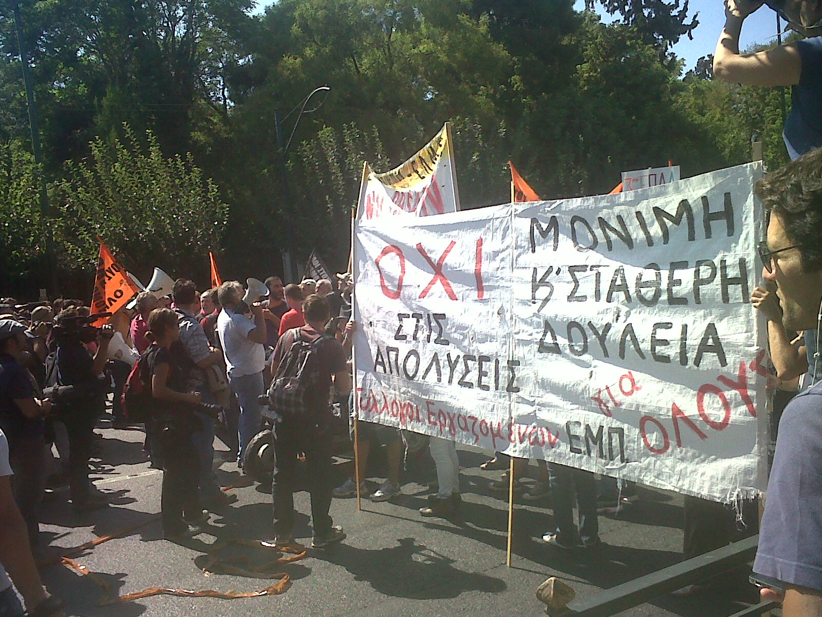 Συνεχίζεται η προσέλευση διαδηλωτών έξω από το υπουργείο Διοικητικής Μεταρρύθμισης στο πλαίσιο της 48ωρης απεργίας της ΑΔΕΔΥ.