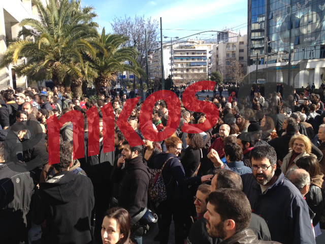 Έξω από τη ΓΑΔΑ διαδηλώνουν αυτή την ώρα μέλη του ΠΑΜΕ για τις περίπου 40 προσαγωγές που έγιναν έξω από το υπουργείο Εργασίας.