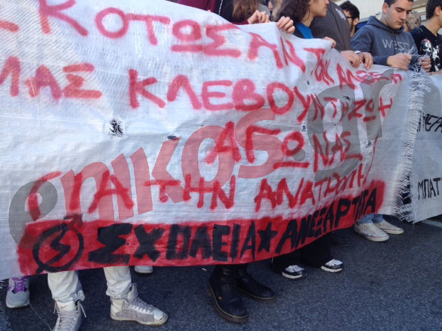 Τα πανώ των μαθητών στην πορεία για τη μνήμη του Αλέξανδρου Γρηγορόπουλου.