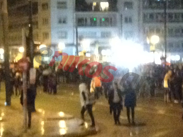 Η βροχή δεν πτοεί τους διαδηλωτές οι οποίοι παραμένουν συγκεντρωμένοι έξω από τη Βουλή με αφορμή την ψηφοφορία που θα γίνει τα μεσάνυχτα για τον προϋπολογισμό του 2015.
