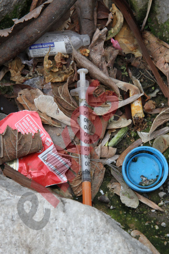 Κανείς υπεύθυνος δεν φαίνεται να ενδιαφέρεται για την Πλατεία Σανταρόζα, που είναι γεμάτη σύριγγες και εγκυμονεί κινδύνους για τη δημόσια υγεία. Τις φωτογραφίες μας έστειλε αναγνώστης.