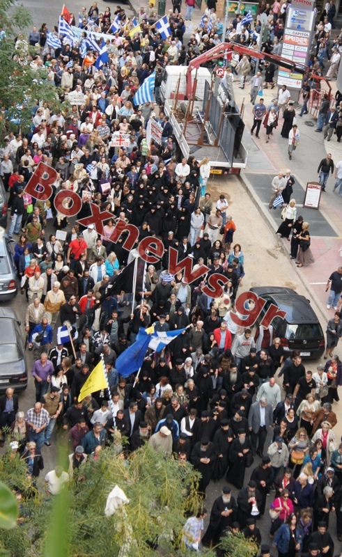 Τώρα ξεκίνησε από το Πεδίον του Άρεως η πορεία διαμαρτυρίας στην οποία συμμετέχουν ιερείς, πιστοί και μέλη θρησκευτικών οργανώσεων. Κινούνται προς την Βουλή για να επιδώσουν ψήφισμα κατά της «κάρτας του πολίτη- ηλεκτρονική ταυτότητα».