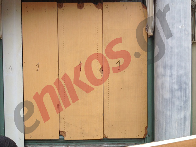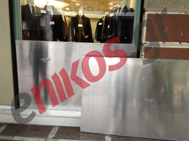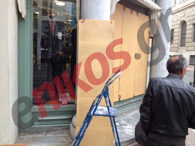 Πολλοί καταστηματάρχες, τοποθετούν προστατευτικά στις προσόψεις των καταστημάτων τους, λίγο πριν την έναρξη της πορείας, που θα κλείσει τις εκδηλώσεις για τον εορτασμό, της 39ης επετείου, από την εξέγερση του Πολυτεχνείου.