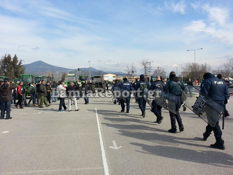 Στην είσοδο της πόλης της Λαμίας, στο χώρο της Πανελλήνιας Έκθεσης Λαμίας (ΠΕΛ), παρατάχθηκαν νωρίτερα οι αγρότες της Φθιώτιδας με αναμμένες τις μηχανές των τρακτέρ.
