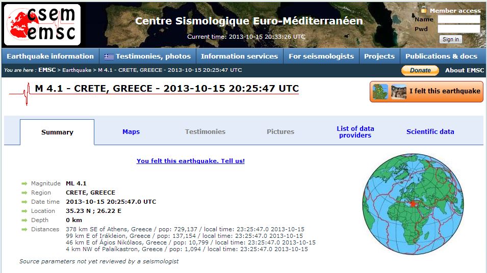 Η προκαταρκτική μέτρηση από το Ευρωμεσογειακό Σεισμολογικό Ινστιτούτο, δίνει τον σεισμό στα 4,1 Ρίχτερ.