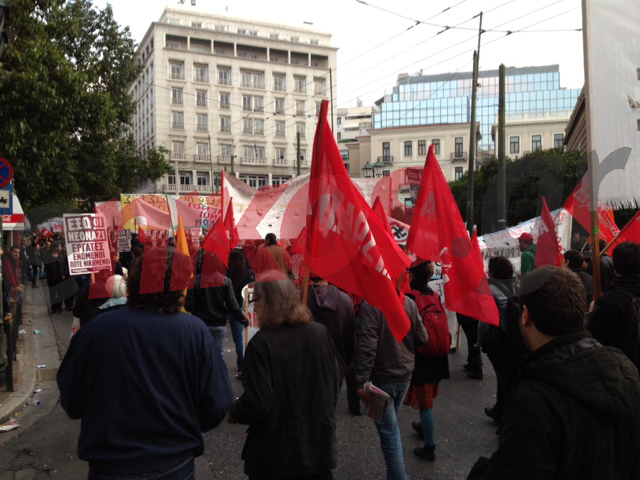 Στη Σταδίου βρίσκεται αυτή την ώρα η πορεία των διαδηλωτών.