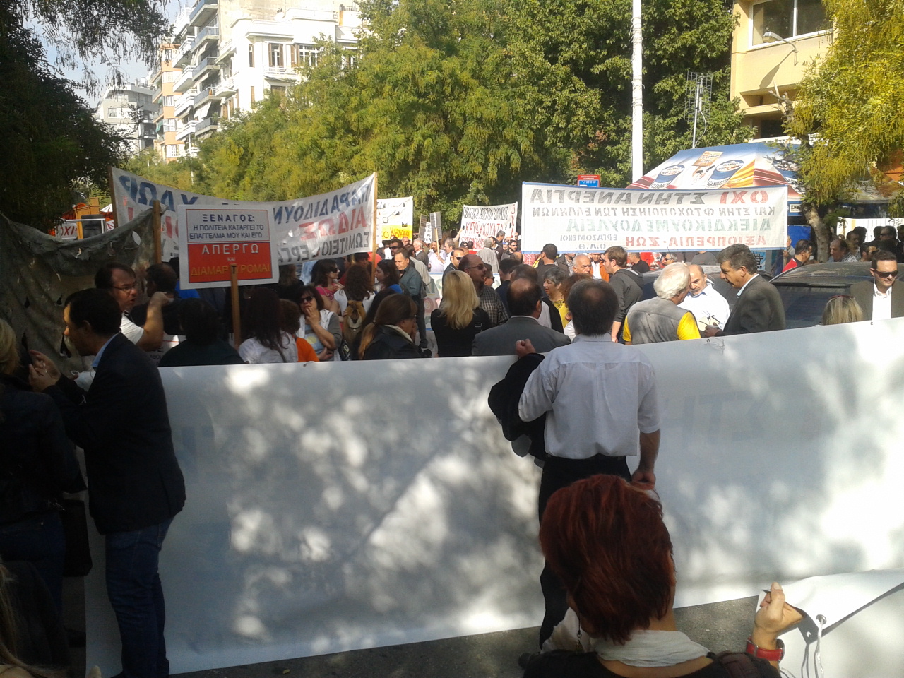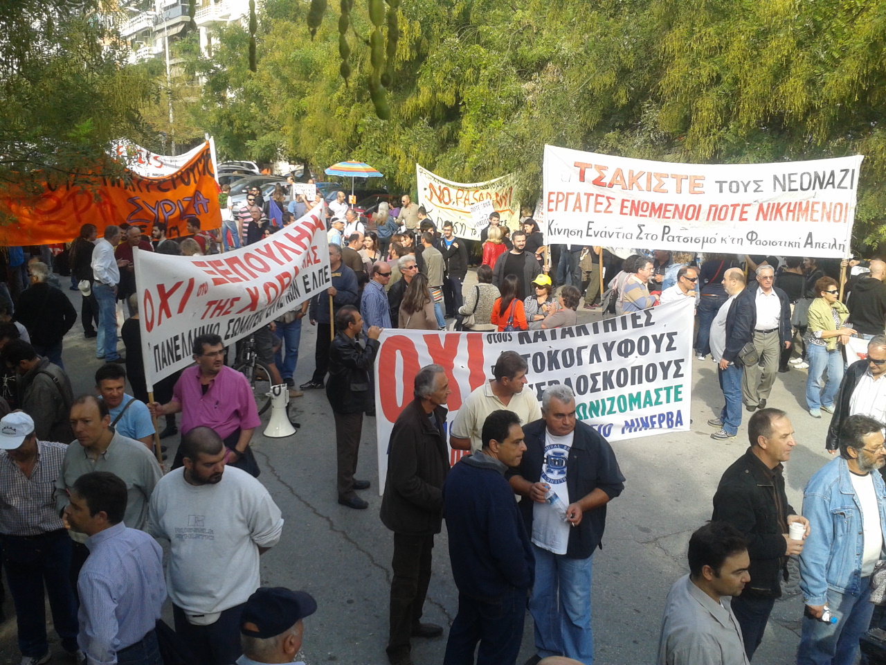 Δείτε εικόνες από τη συγκέντρωση εργαζομένων δημοσίου και ιδιωτικού τομέα έξω από το Εργατοϋπαλληλικό Κέντρο Θεσσαλονίκης.