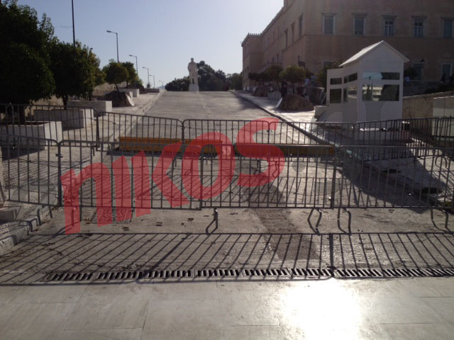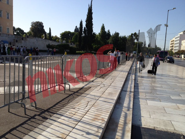 Σε ετοιμότητα ενόψει των συγκεντρώσεων που ξεκινούν σε λίγο. Τα κάγκελα έχουν περιφράξει το χώρο του κοινοβουλίου και οι κλούβες των ΜΑΤ σε θέση αναμονής.