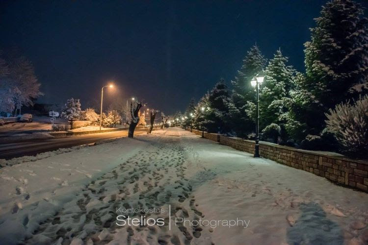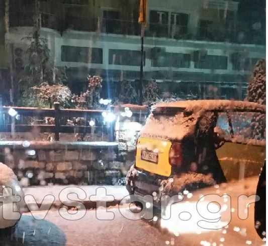 Ασταμάτητα χιονίζει από νωρίς το απόγευμα στο Καρπενήσι και αυτή την ώρα το χιόνι έχει σκεπάσει τα πάντα μέσα στη πόλη.