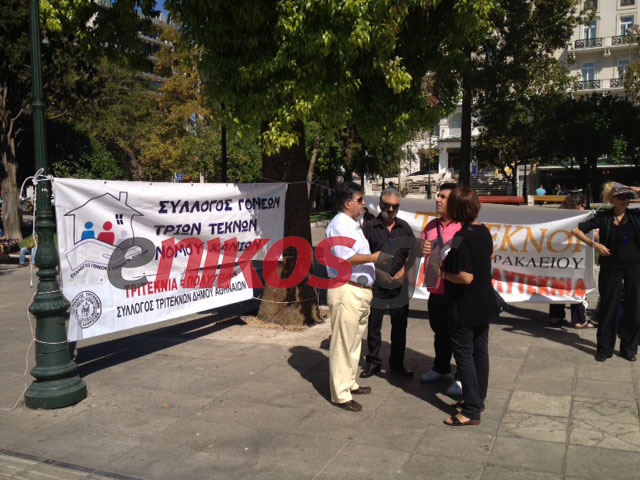 Οικογένειες με τρία παιδιά βρίσκονται αυτή την ώρα στο δρόμο.Σύλλογοι τρίτεκνων οικογενειών πραγματοποιούν αυτή την ώρα συγκέντρωση διαμαρτυρίας στη πλατεία Συντάγματος λόγω των οικονομικών προνομίων που χάνουν.Η κίνηση στο κέντρο διεξάγεται κανονικά καθώς δεν έχει κλείσει κανένας δρόμος.