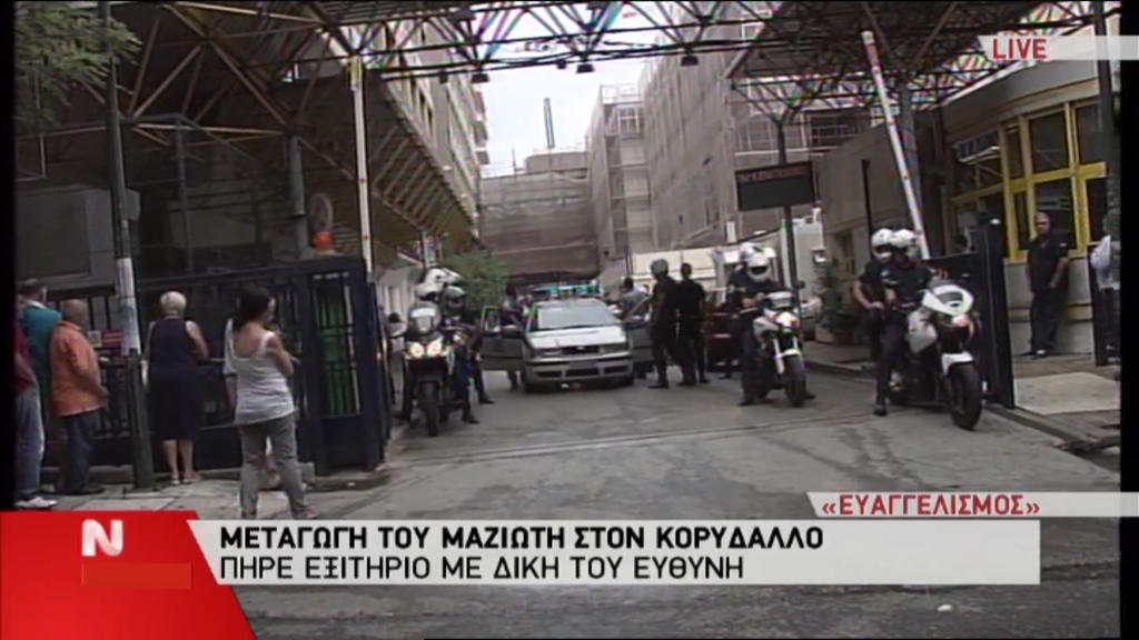 Άρχισε η διαδικασία της μεταγωγής του Νίκου Μαζιώτη από τον Ευαγγελισμό στις φυλακές Κορυδαλλού. Η αυτοκινητοπομπή θα ξεκινήσει σε πολύ λίγο, με τα μέτρα ασφαλείας να είναι δρακόντεια.