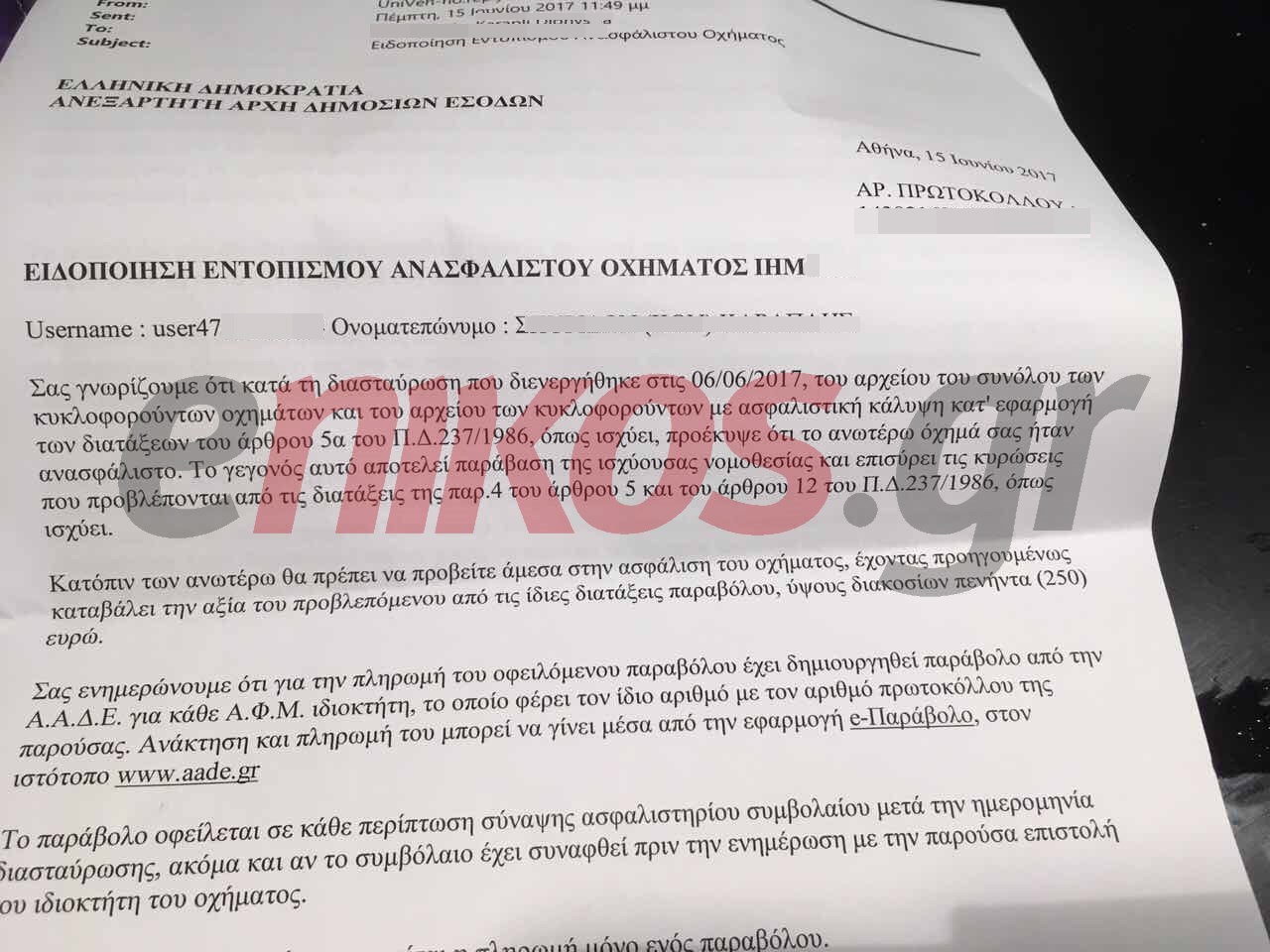 Όπως αναφέρει ο αναγνώστης του enikos.gr, που ζει στη βελγική πρωτεύουσα, η αδελφή του, η οποία ζει στην Ελλάδα, του έστειλε αυτό το ειδοποιητήριο με το πρόστιμο για αυτοκίνητο που έχει μεταβιβάσει από το 2009.