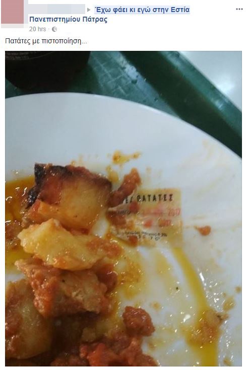 Του σέρβιραν πατάτες μαζί με την ετικέτα – Τι καταγγέλλει φοιτητής από το Πανεπιστήμιο Πατρών – ΦΩΤΟ
