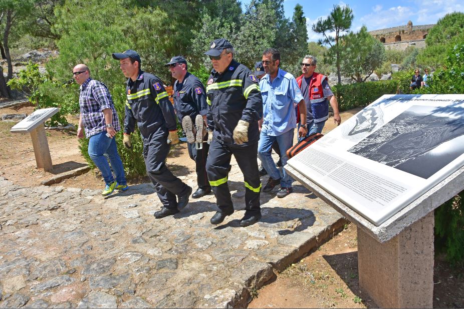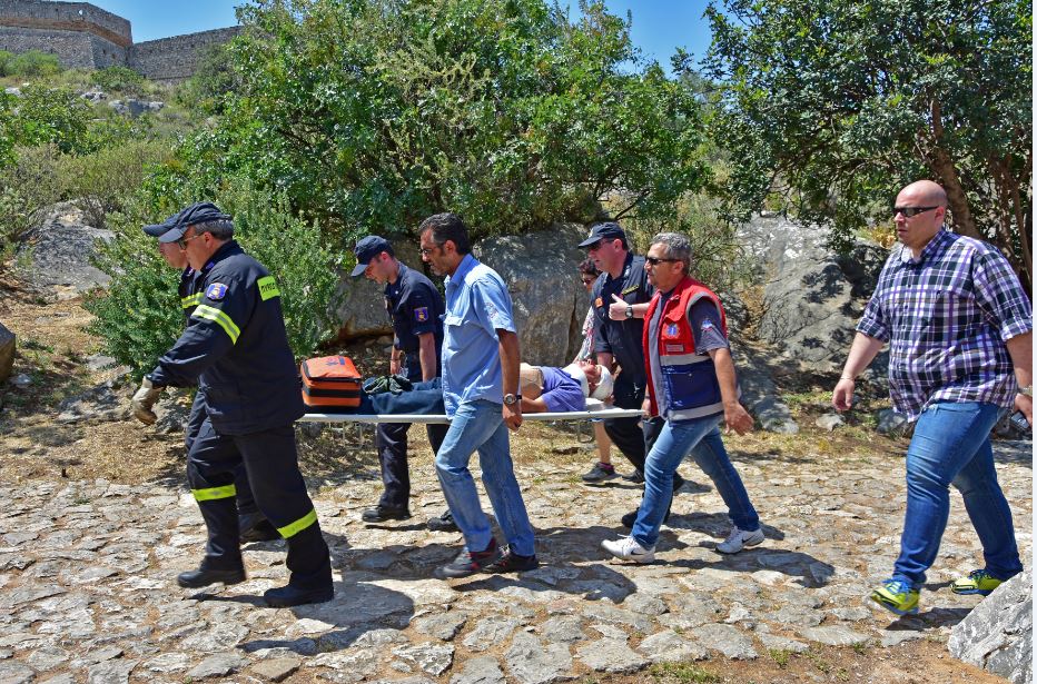 Στο σημείο έσπευσαν άνδρες της Πυροσβεστικής και ανέσυραν τον τραυματισμένο άντρα μεταφέροντας τον στην είσοδο του κάστρου.