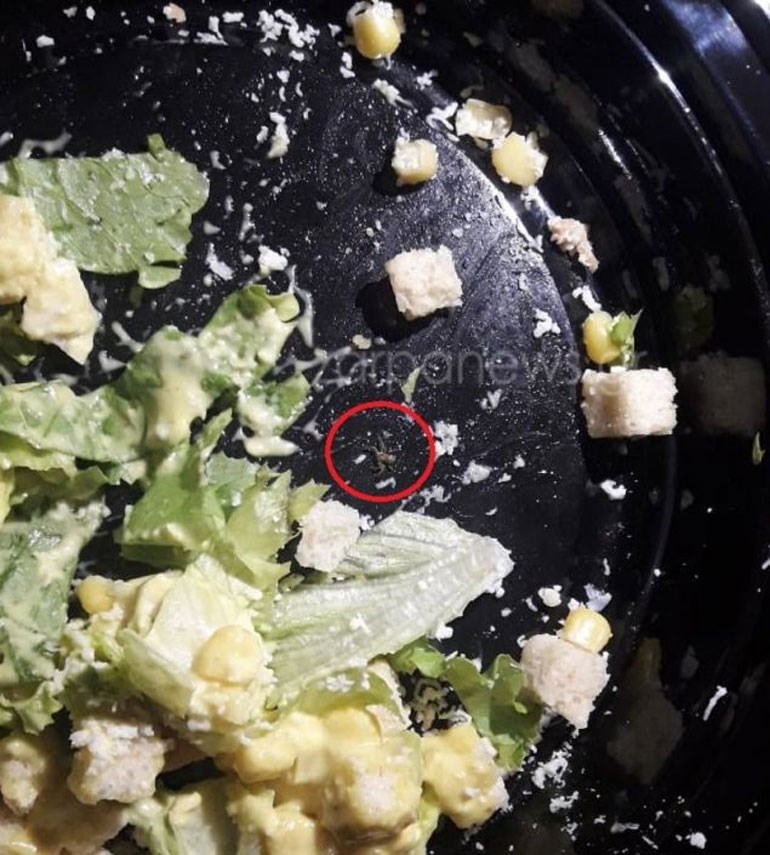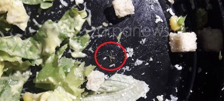 Δυστυχώς όμως το περιεχόμενο της σαλάτας τους έκοψε την όρεξη, καθώς σε αυτό περιλαμβάνονταν και μια ολοζώντανη “χαριτωμένη” αράχνη, όπως φαίνεται και στις σχετικές φωτογραφίες.