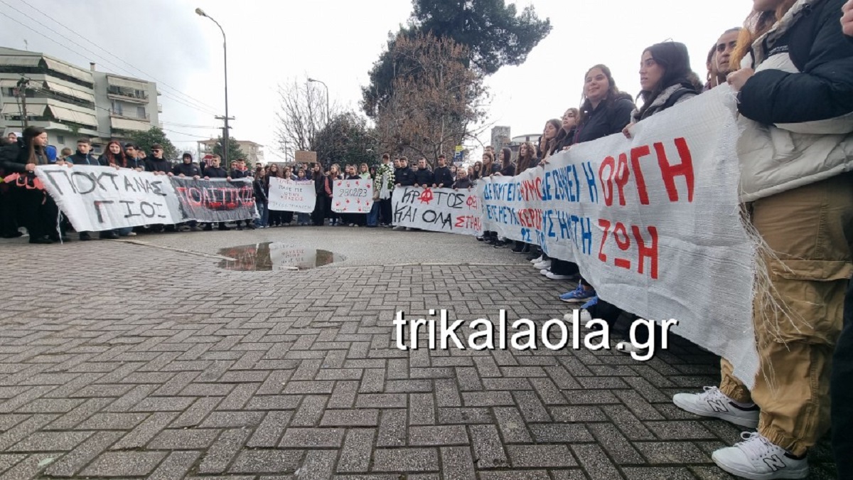 Χιλιάδες μαθητές των σχολείων, μαζί με απεργούς, συμμετείχαν σήμερα στην μεγάλη απεργιακή συγκέντρωση και πορεία στα Τρίκαλα για τον ένα χρόνο από την τραγωδία των Τεμπών.